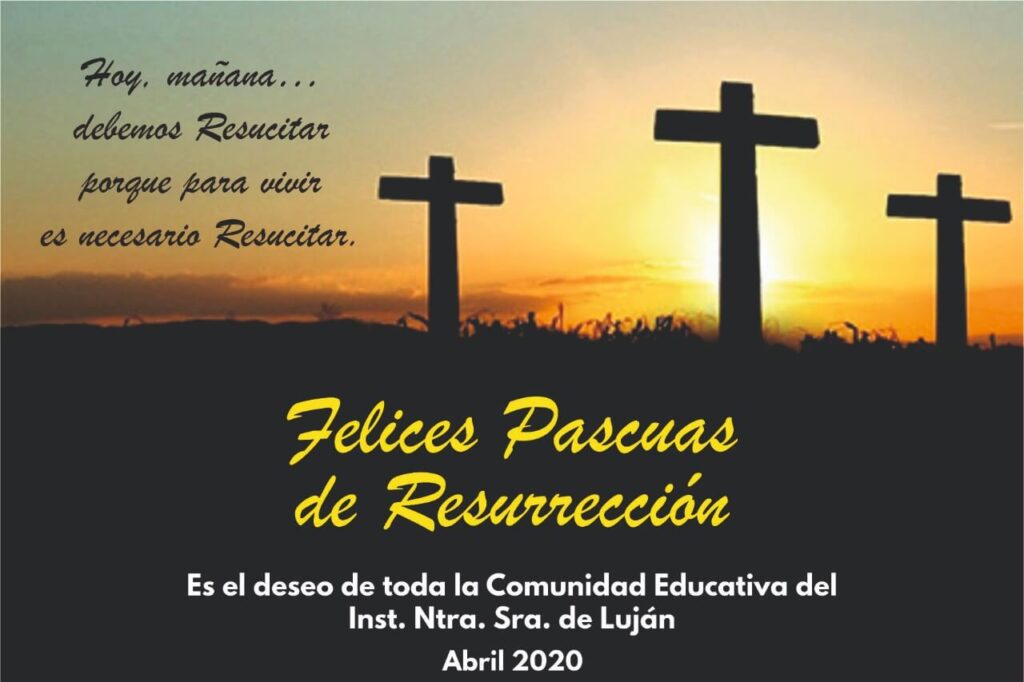 Estimadas familias: hoy los invitamos a celebrar la Semana Santa que va ser muy diferente en comparación con las que hemos pasado hasta ahora, ya que la vamos a vivir en casa. Les deseamos que estos días les brinden la oportunidad de encontrarse en familia con aquello que consideran esencial para la Vida.